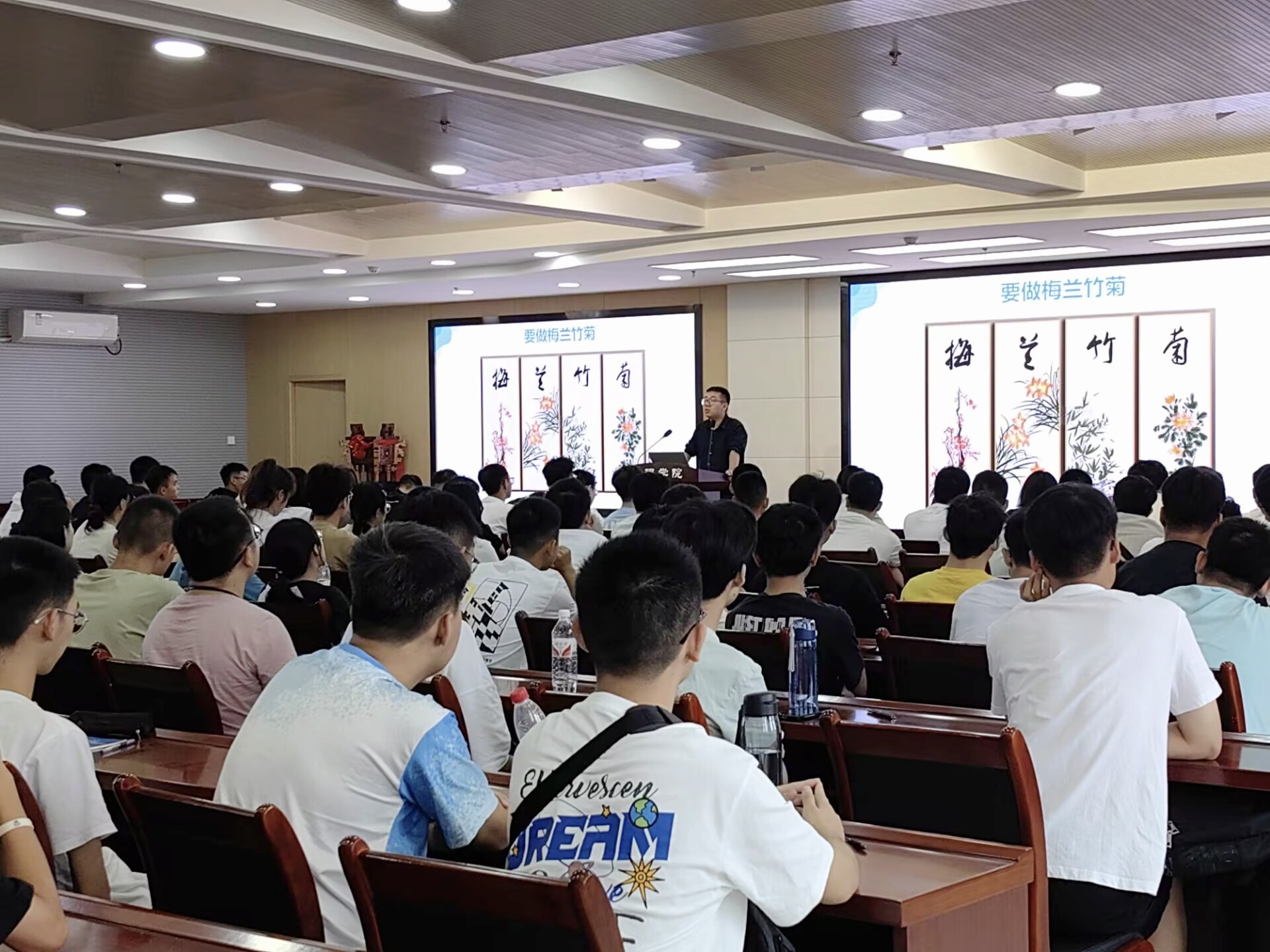 最后,吴嘉琦老师以中华优秀传统文化“梅兰竹菊”的意象表达了对大家的殷切期望。他表示,希望同学们能以梅花的傲骨、兰花的贤德、青竹的气节和秋菊的朝气迎接老员工活,扣好老员工活的第一粒扣子,在这里开启自己崭新的旅程。