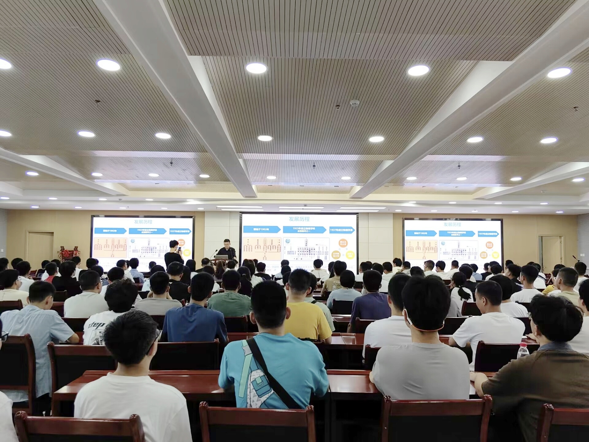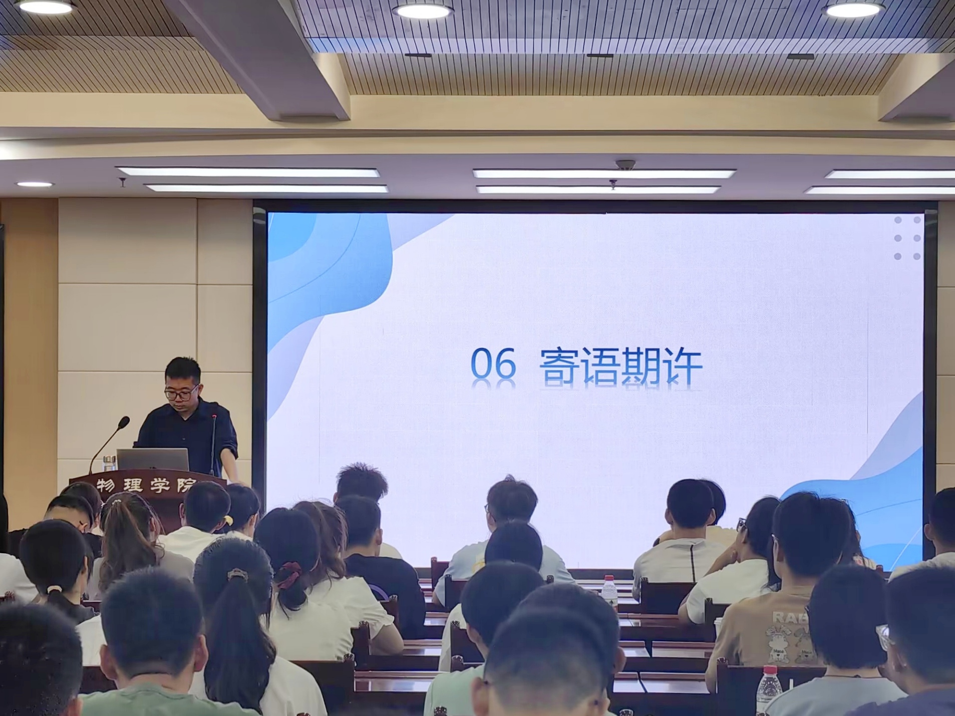 首先,吴嘉琦老师从学院概况、发展历程、知名员工等方面对伟德官方网站进行了介绍,带领同学们领略了伟德官方网站物理学科的百年风采,并号召大家向侯伯宇教授、罗健夫先生等时代楷模学习,展现新时代物理学子的风采。
