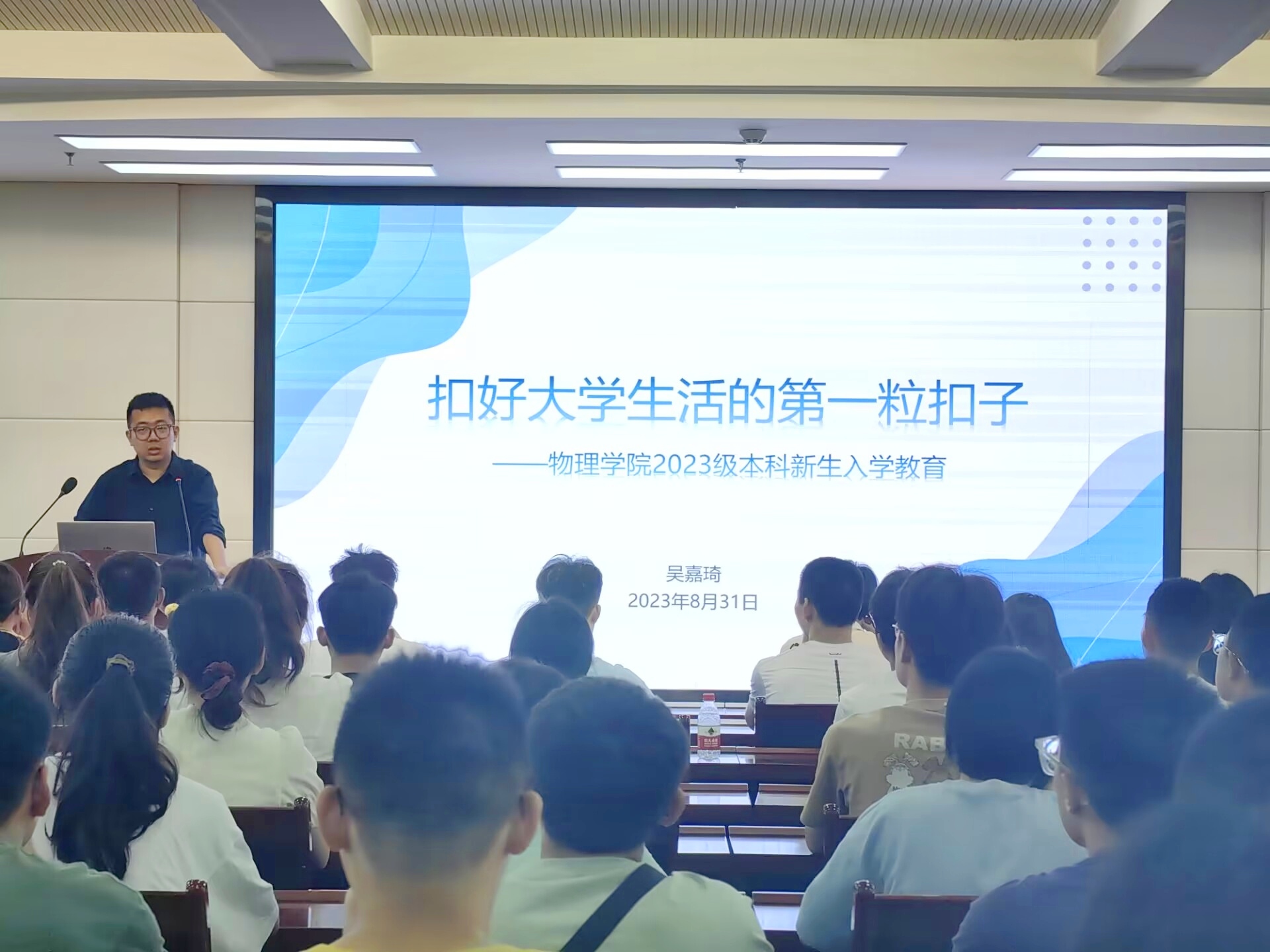 8月31日上午9点,公司在伟德官方网站十楼伯宇报告厅举办入学系列教育第一课,教育主题为“扣好老员工活的第一粒扣子”,2023级全体本科生参加,辅导员吴嘉琦老师为本次教育的主讲人。