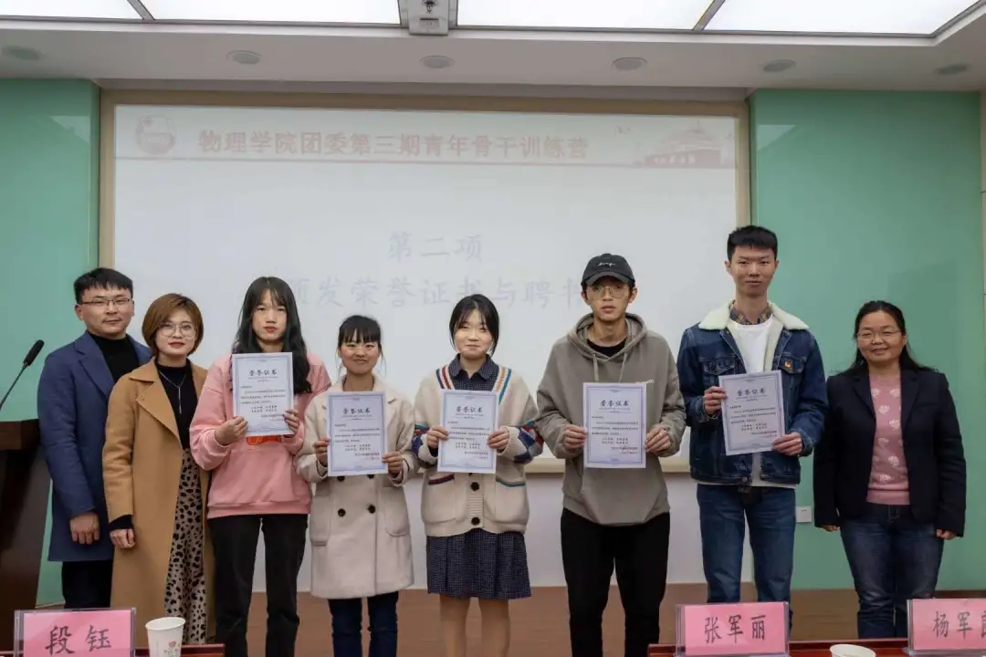 随后,党委书记张军丽老师、团委书记高雪依老师、团委副书记卢凯老师为第二期优秀学员代表颁发荣誉证书,伟德官方网站党委副书记杨军良、院团委副书记段钰老师、专职团干艾玉老师为本届干部及学员颁发聘书。